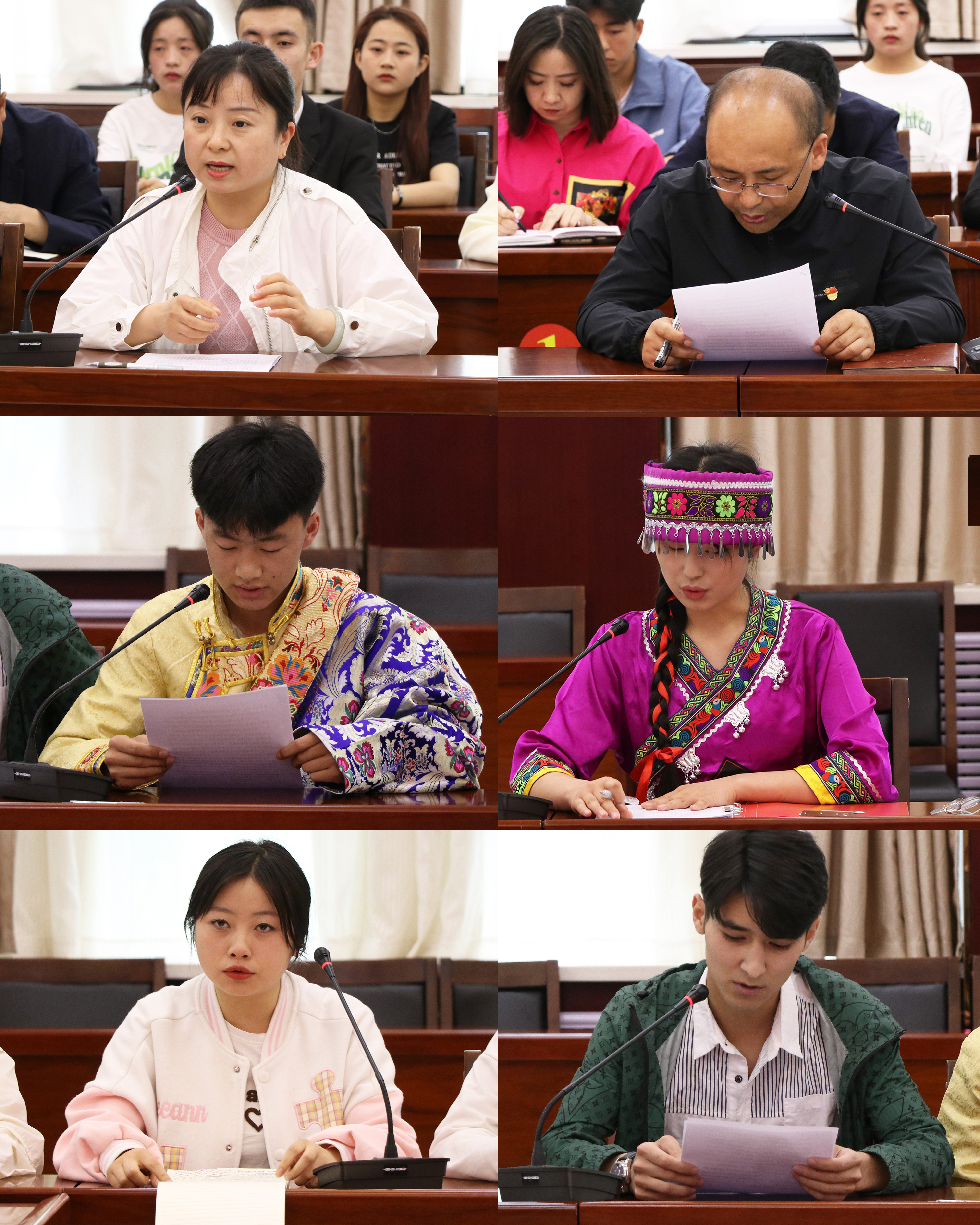 來自漢族、藏族、回族、維吾爾族、土族、苗族、東鄉(xiāng)族、保安族、裕固族、滿族等民族的10名師生代表在座談會上進行了交流發(fā)言,分別介紹了本民族的風(fēng)土人情、傳統(tǒng)文化、生活習(xí)慣、成長經(jīng)歷和在學(xué)校的學(xué)習(xí)工作生活情況。大家紛紛表示,中華民族一家親,要始終牢記黨和國家的關(guān)心關(guān)懷,鑄牢中華民族共同體意識,珍惜大學(xué)時光,扎實學(xué)好知識,練就過硬本領(lǐng),將來積極投身家鄉(xiāng)建設(shè),把對黨和國家的感恩之情轉(zhuǎn)化為努力報國之行,為促進各民族共同團結(jié)進步,共同繁榮發(fā)展。