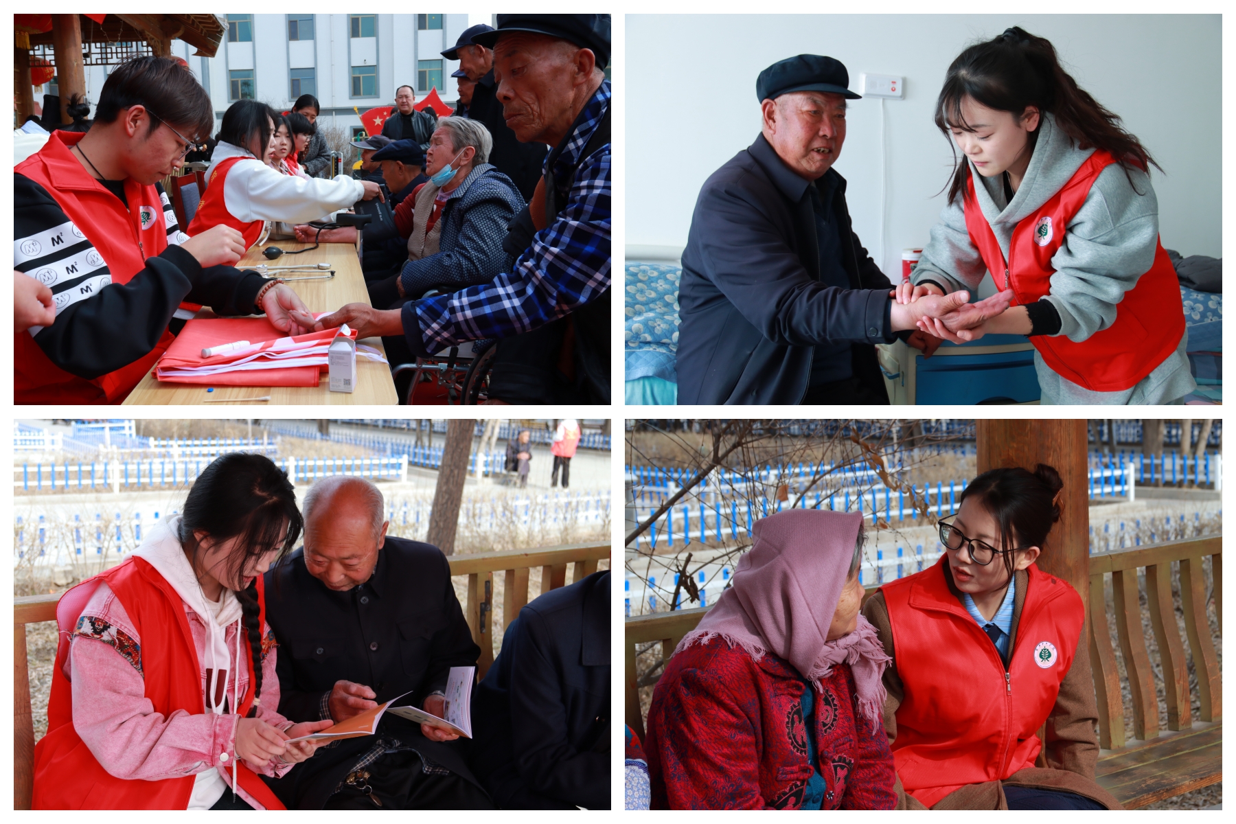 在健康慰問環(huán)節(jié),護(hù)理學(xué)院志愿者結(jié)合專業(yè)特色,分組為老人測量血壓、血糖,并耐心給老人講解養(yǎng)生知識,告知在日常生活起居中的注意事項(xiàng),以專業(yè)技能守護(hù)老人健康。