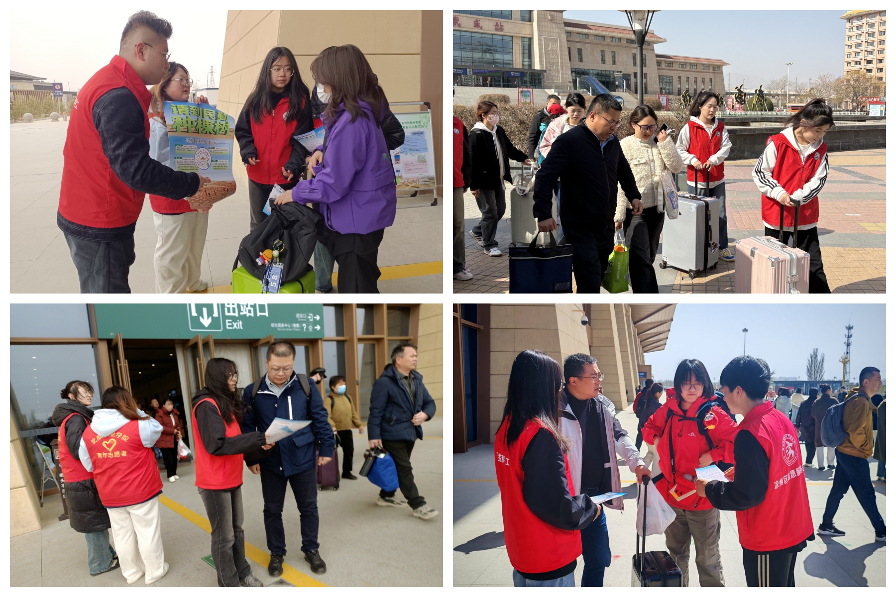 助力“請(qǐng)到民勤種棵樹(shù)”活動(dòng)。宣傳統(tǒng)戰(zhàn)部、校團(tuán)委組織志愿者在武威高鐵站、火車站、客運(yùn)中心設(shè)立志愿服務(wù)站,為前來(lái)參加“請(qǐng)到民勤種棵樹(shù)”活動(dòng)的志愿者們提供引導(dǎo)服務(wù),詳細(xì)告知前往民勤的乘車路線、換乘信息和注意事項(xiàng),協(xié)助搬運(yùn)行李,引導(dǎo)他們有序乘車。