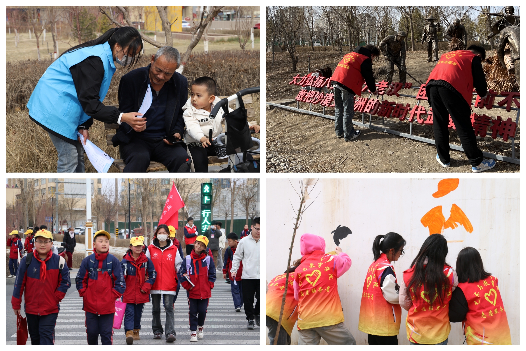 開(kāi)展青春社區(qū)志愿服務(wù)活動(dòng)。3月4日,護(hù)理學(xué)院組織15名志愿者前往西關(guān)街社區(qū)開(kāi)展“保護(hù)環(huán)境,建設(shè)美麗社區(qū)”志愿服務(wù)活動(dòng),活動(dòng)中志愿者們手持清潔工具,鏟除墻面小廣告,倡導(dǎo)綠色環(huán)保生活理念,引導(dǎo)市民共同守護(hù)美好家園。3月9日,現(xiàn)代農(nóng)業(yè)學(xué)院組織志愿者前往海藏公園開(kāi)展“公園環(huán)保行動(dòng)派”志愿服務(wù)活動(dòng),清理雜草雜物,向過(guò)往群眾宣傳垃圾分類知識(shí)。3月6日,中科低碳新能源技術(shù)學(xué)院志愿者在學(xué)校周邊十字路口開(kāi)展文明交通勸導(dǎo)活動(dòng),向行人普及交通安全知識(shí)、提醒遵守交通信號(hào)燈,向騎行者強(qiáng)調(diào)佩戴安全頭盔、不逆行、不闖紅燈的重要性,組成護(hù)學(xué)小分隊(duì)引導(dǎo)周邊小學(xué)的同學(xué)有序通過(guò)馬路等。3月29日,藝術(shù)與教育學(xué)院學(xué)前教育專業(yè)20余名志愿者前往富鑫源社區(qū)化身“社區(qū)美育師”,與甘肅十二元素傳媒有限公司設(shè)計(jì)師共同完成了“鄰里和諧”主題墻繪。
