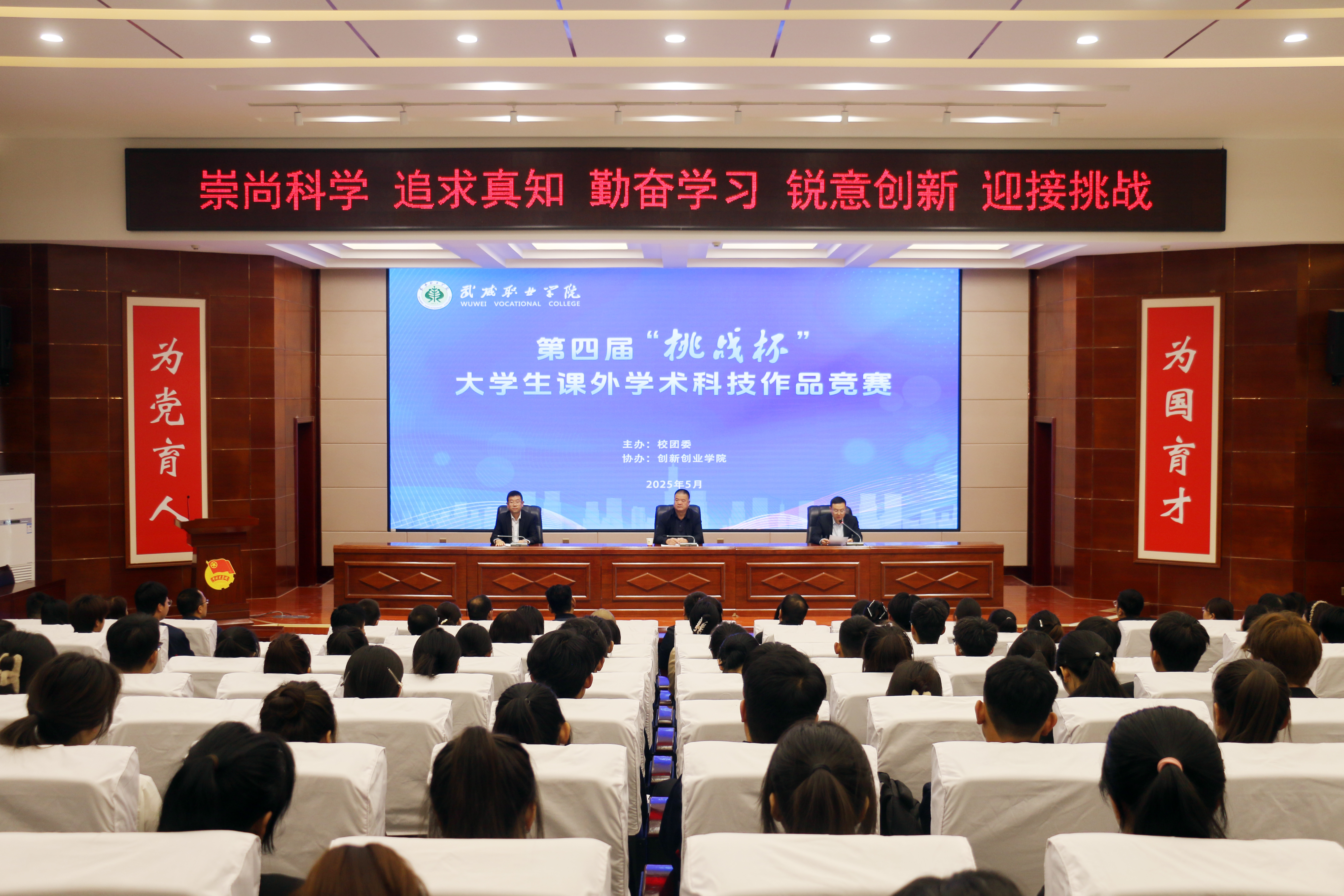 5月10日,學校在學生發(fā)展中心舉辦第四屆“挑戰(zhàn)杯”大學生課外學術(shù)科技競賽終審決賽,黨委委員、副校長王守云出席并講話,校團委全體教師、創(chuàng)新創(chuàng)業(yè)學院相關(guān)教師、作品指導(dǎo)教師和學生等200余人參加。