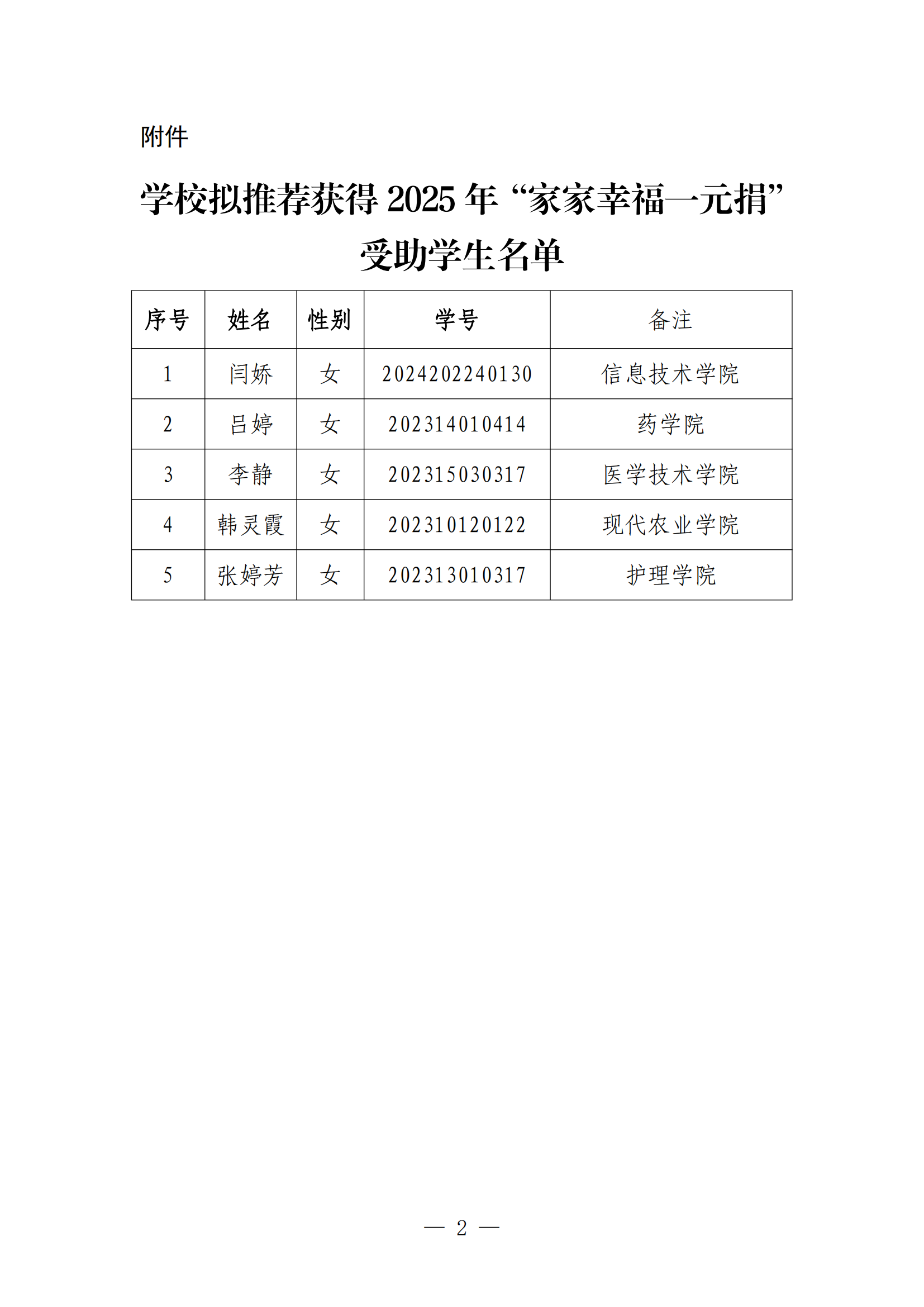 關(guān)于2025年“家家幸福一元捐”擬受助學(xué)生名單的公示