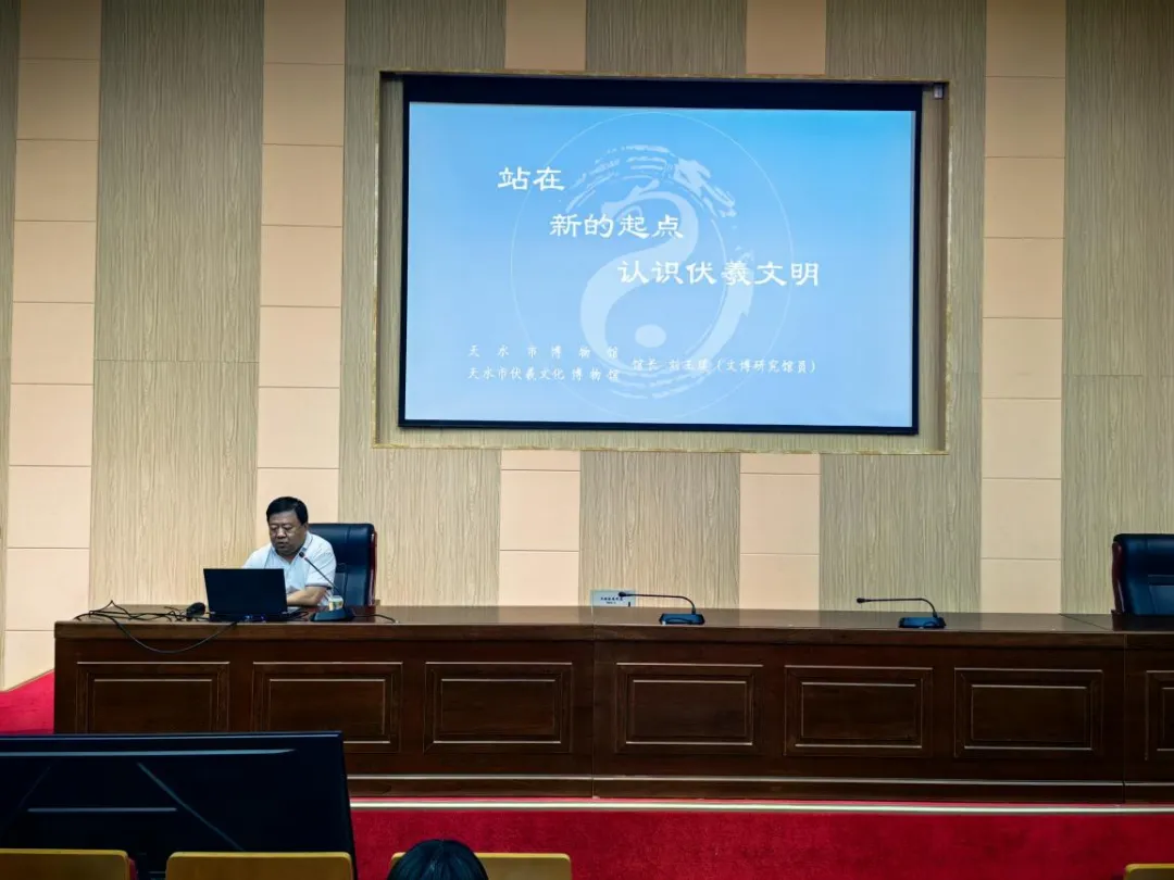 講座中,劉玉璞以習近平總書記考察天水伏羲廟的重要講話為切入點,圍繞“中華文明起源”“鑄牢中華民族共同體意識”“實現(xiàn)中華民族偉大復(fù)興”三大維度展開,系統(tǒng)梳理了伏羲文化研究的最新成果,指出伏羲文明是中華文明的重要源頭,其文化符號深刻體現(xiàn)了中華民族早期先民的宇宙觀與價值觀。通過考古發(fā)現(xiàn)與文獻互證,他闡釋了伏羲文化在推動多民族融合、促進文化認同中的歷史作用,并強調(diào)伏羲文化在當代的價值不僅在于學術(shù)研究,更需轉(zhuǎn)化為增強民族文化自信、服務(wù)社會發(fā)展的精神動力。這場講座以生動的語言和詳實的例證,為聽眾勾勒出一部從史前文明到當代傳承的伏羲文化發(fā)展史,現(xiàn)場反響熱烈。
