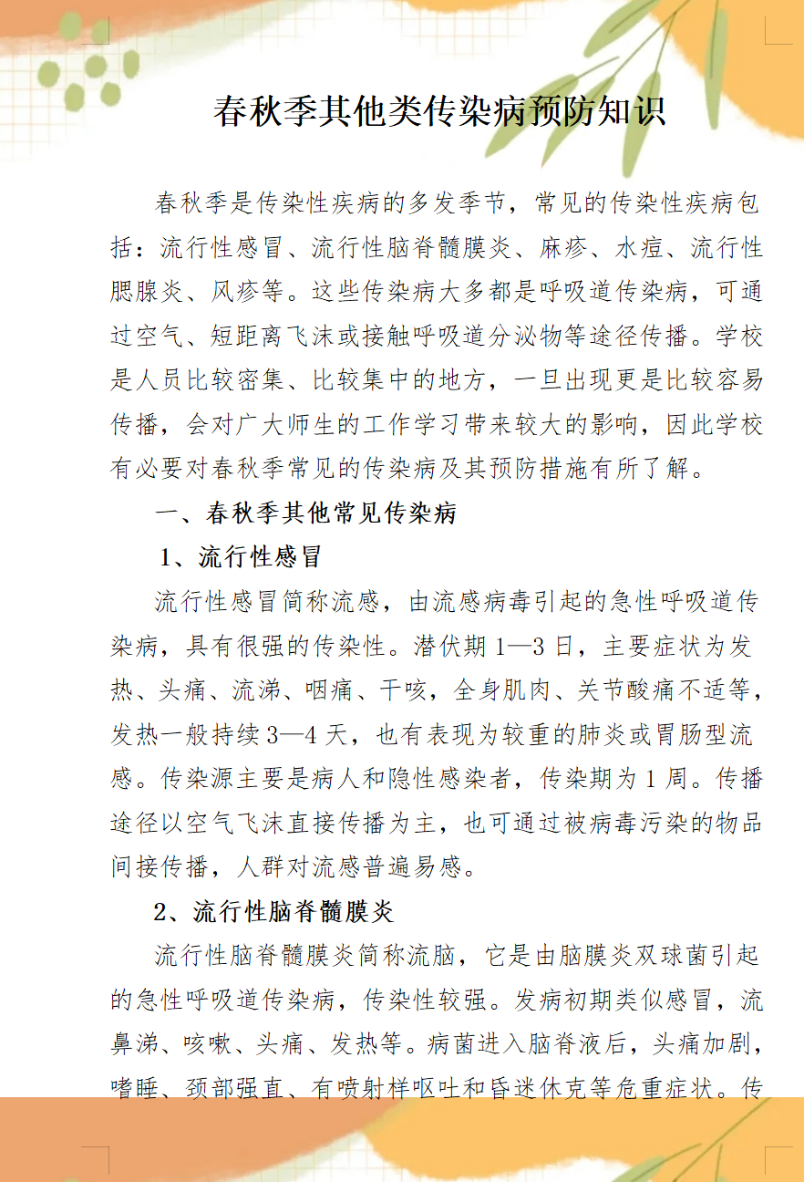 春秋季其他類傳染病預(yù)防知識(shí)