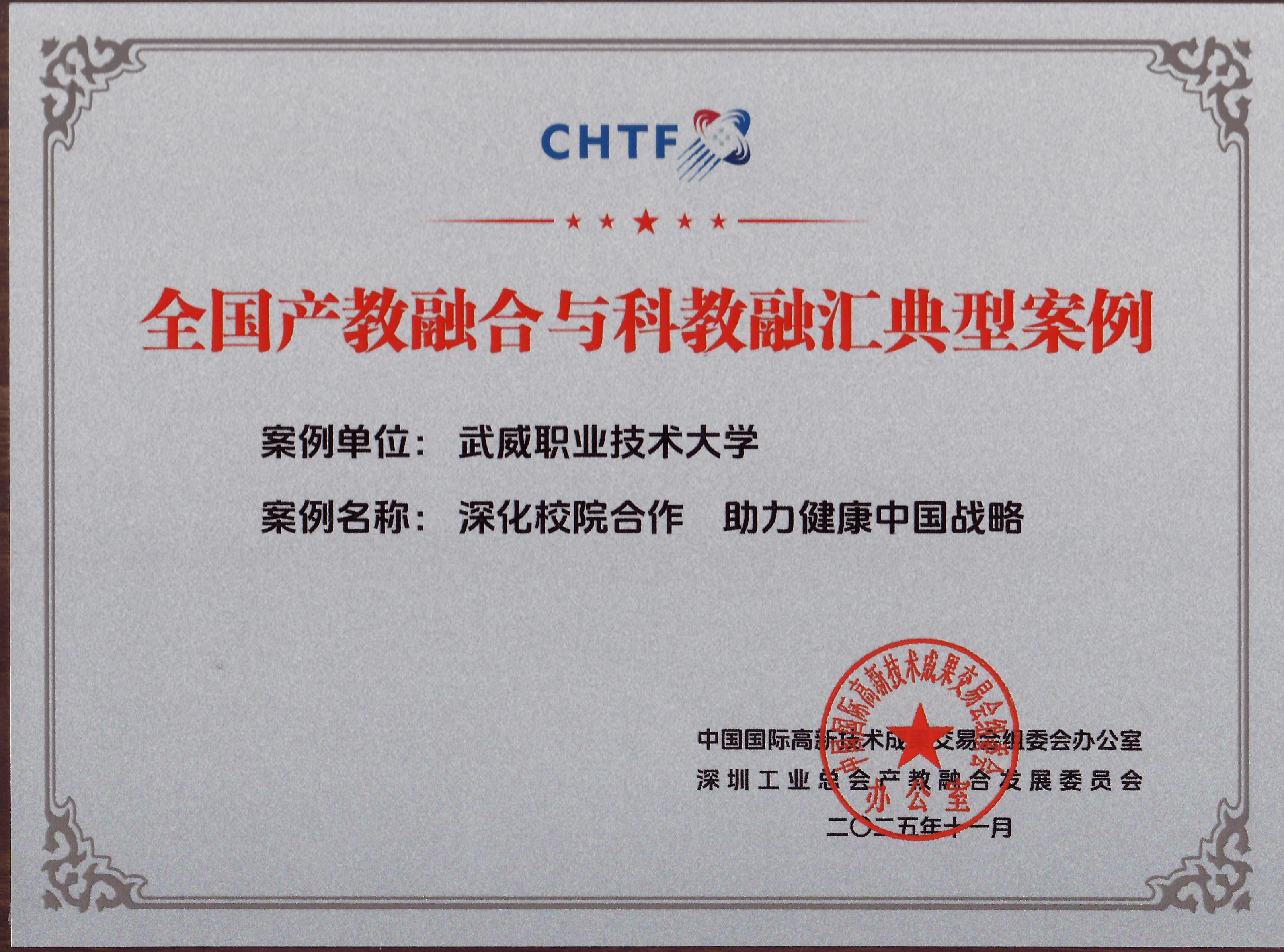 近日,第二十七屆中國國際高新技術成果交易會組委會公布產教融合與科教融匯典型案例評選結果,我校報送的《深化校院合作 助力健康中國戰(zhàn)略——武威職業(yè)技術大學與甘肅省武威腫瘤醫(yī)院開展校院合作新實踐》成功入選《全國產教融合與科教融匯典型案例匯編》,標志著我校在實施科教融匯行動,推動健康人才培養(yǎng)實踐獲得國家級平臺認可。