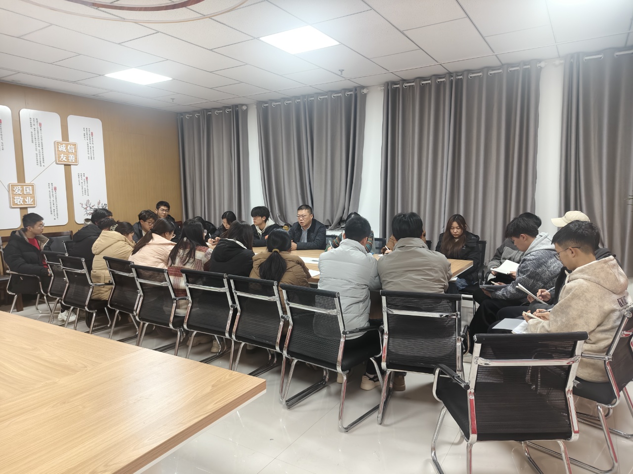 為切實開展“五進(jìn)”“兩參加”“一講座”活動,近日,校長李海軍深入中科低碳新能源技術(shù)學(xué)院2025級新能源發(fā)電工程技術(shù)本科2班,通過講授思政課、進(jìn)課堂聽評課、參與主題班會、開展面對面座談交流等多種形式,與學(xué)生深度互動,傳遞育人溫度。