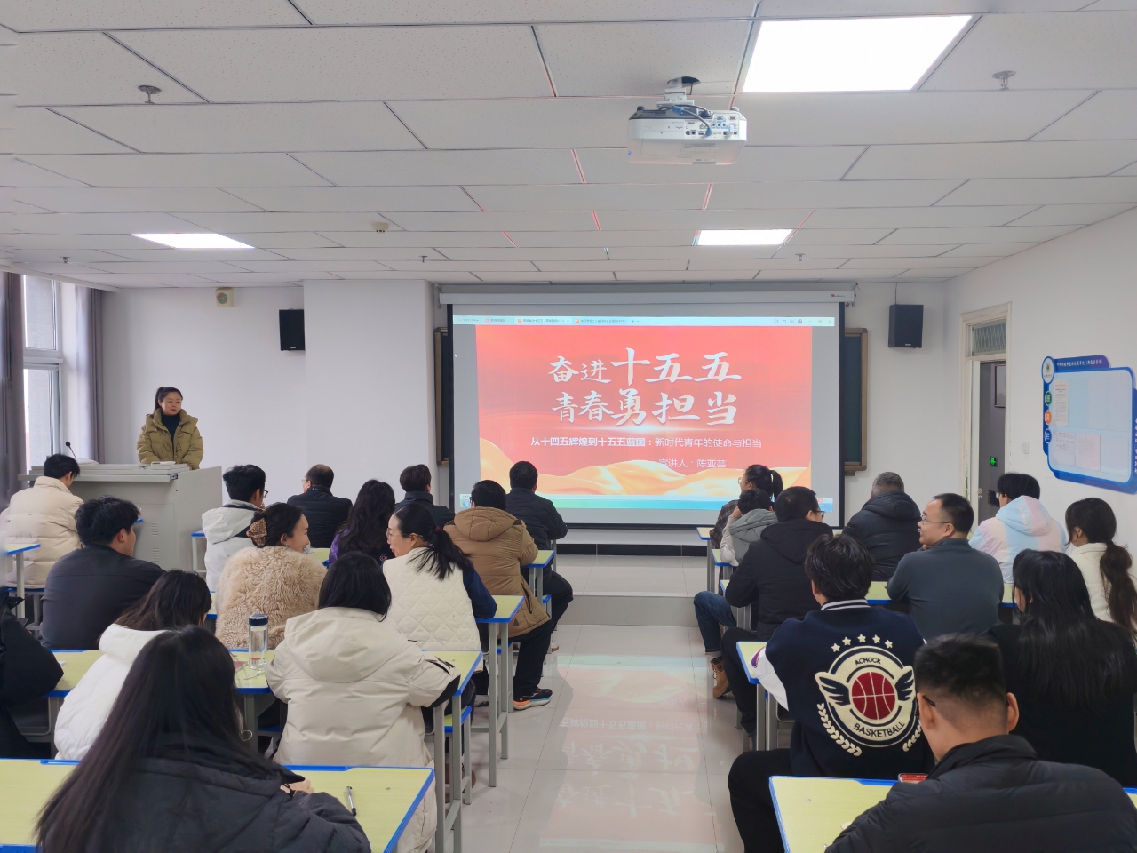 12月11日,學(xué)院邀請學(xué)校宣講組成員、馬克思主義學(xué)院教師陳亞蕓在能源科技樓612開展專題宣講,全體黨員、教職工、入黨積極分子及團(tuán)學(xué)干部參加。陳亞蕓以“奮進(jìn)十五五,青春勇?lián)?dāng)”為主題,回顧了“十四五”時(shí)期國家發(fā)展取得的歷史性成就,深入解讀了“十五五”規(guī)劃的核心要義與黨的二十屆四中全會精神的實(shí)踐要求。結(jié)合學(xué)院新能源學(xué)科特色,她鼓勵(lì)全體師生主動(dòng)擔(dān)當(dāng)生態(tài)文明建設(shè)先鋒使命,將“小我”融入“大我”,在服務(wù)國家戰(zhàn)略、奉獻(xiàn)社會發(fā)展的生動(dòng)實(shí)踐中書寫青春華章。