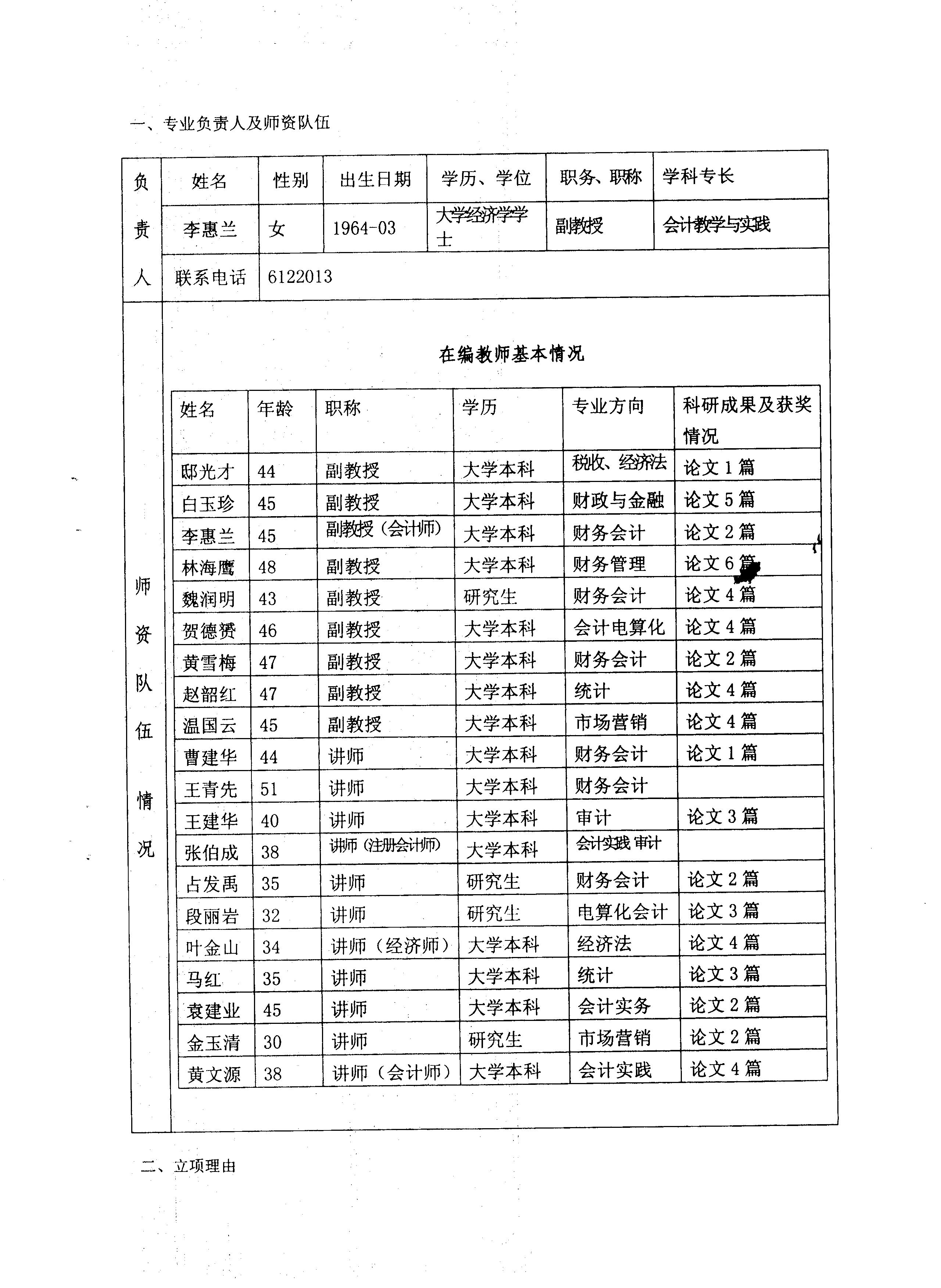 院級重點(diǎn)專業(yè)——會計(jì)專業(yè)申報表