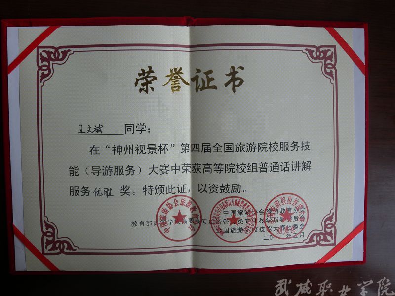 經(jīng)濟管理系晉藝波老師指導(dǎo)我系旅游管理、酒店管理專業(yè)學(xué)生參加2012年“神州視景杯”第四屆全國旅游院校服務(wù)技能(導(dǎo)游技能)大賽,榮獲優(yōu)秀獎。