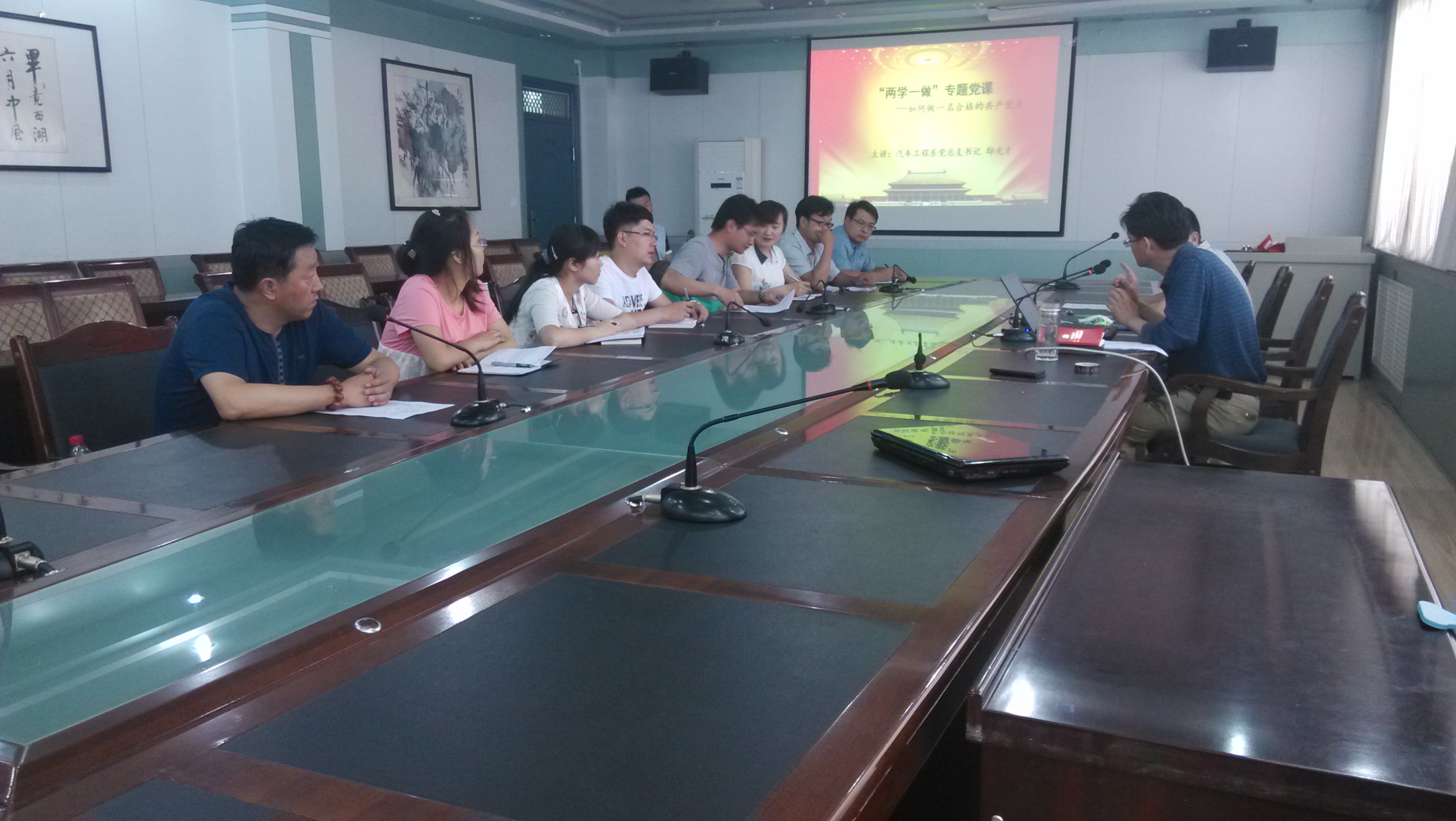 6月26日下午,汽車工程系黨總支在博學(xué)樓二樓會(huì)議室召開黨員大會(huì),由系黨總支書記邸光才為全體黨員講授黨課,黨課以《如何做一名合格的共產(chǎn)黨員》為主題,系黨總支全體黨員聆聽了黨課。