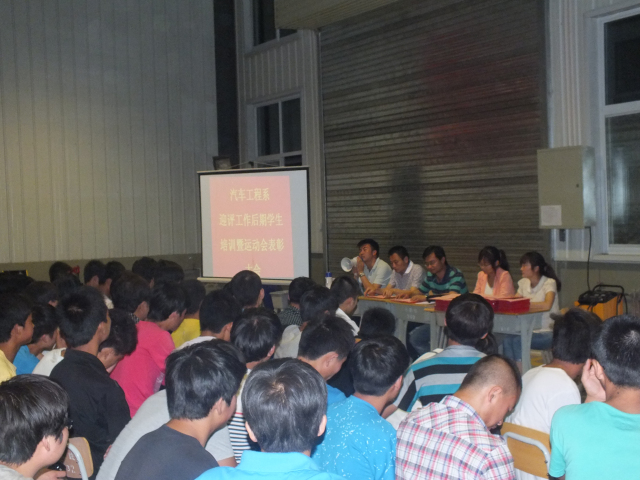 為迎接6月8號至10號全國高職院校人才培養(yǎng)工作評估和表彰剛剛結(jié)束的運動會獲獎?wù)摺N蚁涤?013年6月2日晚8:30在汽車實訓(xùn)中心舉行了“汽車工程系迎評工作后期學(xué)生培訓(xùn)暨運動會表彰大會”,我系學(xué)生工作負(fù)責(zé)人許成林老師、全體班主任和全系學(xué)生參加了本次培訓(xùn)暨表彰大會。