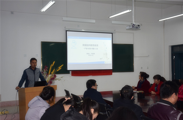 晏素珍就2016年我系教師培訓(xùn)工作做了簡單回顧與總結(jié),隨后蔡飛從美國文化入手,介紹了他們?cè)诿绹永D醽喼萆鐓^(qū)學(xué)院學(xué)習(xí)的基本情況,分享了實(shí)踐教育教學(xué)的信息、理念、方法、感受。龔建軍從美國教育體系著手,分享了他在美國加利福尼亞州社區(qū)學(xué)院參加的“了解美國現(xiàn)代教育教學(xué)理念,全面提高骨干教師專業(yè)建設(shè)與實(shí)踐能力”培訓(xùn)中的所學(xué)所聞,重點(diǎn)介紹了美國職業(yè)教育體系和職業(yè)教育教學(xué)及學(xué)習(xí)模式。