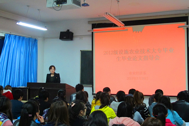 根據(jù)設(shè)施農(nóng)業(yè)技術(shù)專業(yè)人才培養(yǎng)方案要求,結(jié)合國家骨干校項(xiàng)目建設(shè)任務(wù),為了提高2014屆設(shè)施農(nóng)業(yè)技術(shù)專業(yè)畢業(yè)生畢業(yè)論文(設(shè)計(jì))質(zhì)量,農(nóng)業(yè)經(jīng)濟(jì)系于3月16日晚召開了“2014屆大專畢業(yè)生畢業(yè)論文指導(dǎo)會(huì)”。全系教師及2012級設(shè)施農(nóng)業(yè)技術(shù)大專(1)、(2)班81名同學(xué)參加了本次會(huì)議。