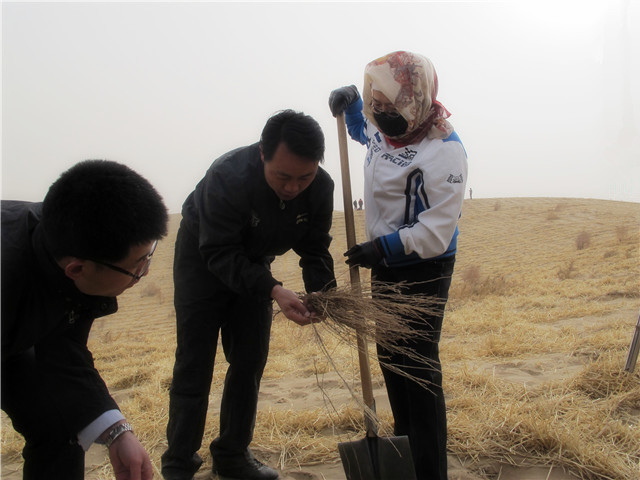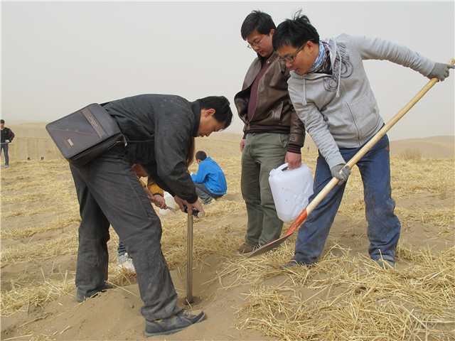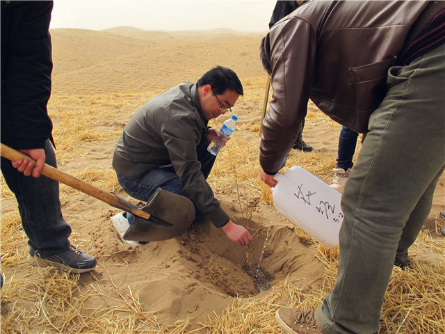 310,我系教師積極參加學(xué)院開(kāi)展的洪水河畔騰格里沙漠腹地春季治沙造林綠化行動(dòng)。