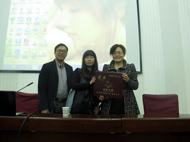 演講結(jié)束后,農(nóng)業(yè)經(jīng)濟(jì)系主任晏素珍、黨總支負(fù)責(zé)人蔡飛向殷繡嬌女士贈送了中國旅游標(biāo)志銅奔馬模型。
