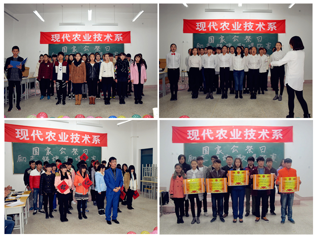 為紀念抗戰(zhàn)勝利70周年,現(xiàn)代農(nóng)業(yè)技術(shù)系團總支積極響應(yīng)院團委號召于2015年12月13日在行樹樓504舉辦以“牢記歷史,勿忘國恥”為主題的鑄魂勵志合唱比賽,系學(xué)生工作負責人蔡飛、部分青年教師及其他系部團學(xué)會主席應(yīng)邀擔任本次比賽評委。