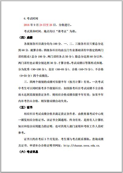 4.考生在2016年9月10—23日在網(wǎng)上打印準考證并在規(guī)定的時間參加考試。