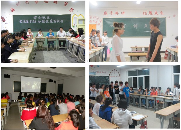 本次活動內(nèi)容豐富,形式多樣,主要包括心理健康主題班會、心理電影賞析、心理游戲、心理知識競賽、心理健康專題黑板報、心理座談會等,由各系選擇性組織開展,吸引了眾多學(xué)生參與。活動分3個階段,5月5日至10日為宣傳動員階段,學(xué)生處負責(zé)策劃安排活動內(nèi)容,下發(fā)通知;5月11日—15日為準(zhǔn)備啟動階段,各系選報活動項目;5月16日—28日為實施階段,各系組織開展活動;5月28日—31日為總結(jié)階段,各系總結(jié),上報活動資料,心理健康教育中心歸納總結(jié)。