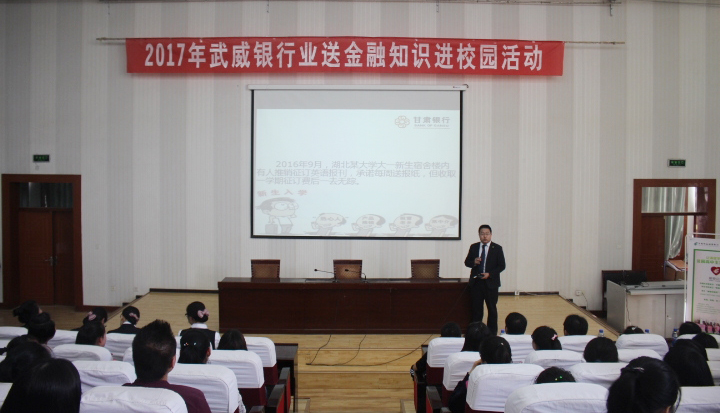 為幫助同學(xué)們了解和掌握銀行業(yè)消費常識,增強科學(xué)合理使用銀行產(chǎn)品和服務(wù)的能力,提升同學(xué)們對金融業(yè)務(wù)的風(fēng)險防范和識別能力,5月11日下午,經(jīng)濟管理系與甘肅銀行武威分行、郵政儲蓄銀行武威市分行在學(xué)院正德廳聯(lián)合開展了“銀行業(yè)送金融知識進(jìn)校園”宣講活動。經(jīng)濟管理系會計電算化、證券與期貨專業(yè)的350余名同學(xué)參加了此次宣講會。