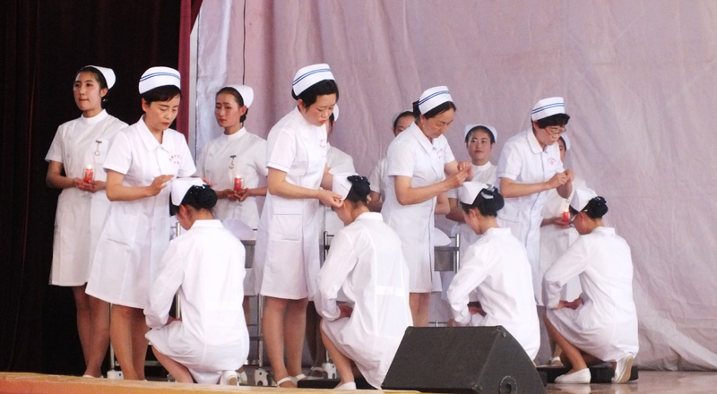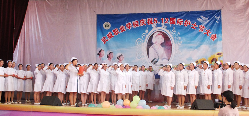 為繼承和弘揚南丁格爾精神,積極推動護理專業(yè)人才建設(shè)和職業(yè)內(nèi)涵塑造,展示我院護理專業(yè)師生風(fēng)采,在第106個國際護士節(jié)來臨之際,學(xué)院于5月12日下午在大禮堂隆重舉辦了慶祝國際護士節(jié)活動,武威市衛(wèi)生計生委副主任潘玉華、學(xué)院黨委副書記趙明、紀委書記張富國、副院長王永緒、直屬附屬醫(yī)院護理部主任、相關(guān)處室領(lǐng)導(dǎo)及護理系全體師生1200余人參與了本次活動?;顒影ㄗo士授帽儀式,護理實踐技能操作表演,第四屆護理技能大賽頒獎,慶祝“5.12”護士節(jié)文藝演出等內(nèi)容。