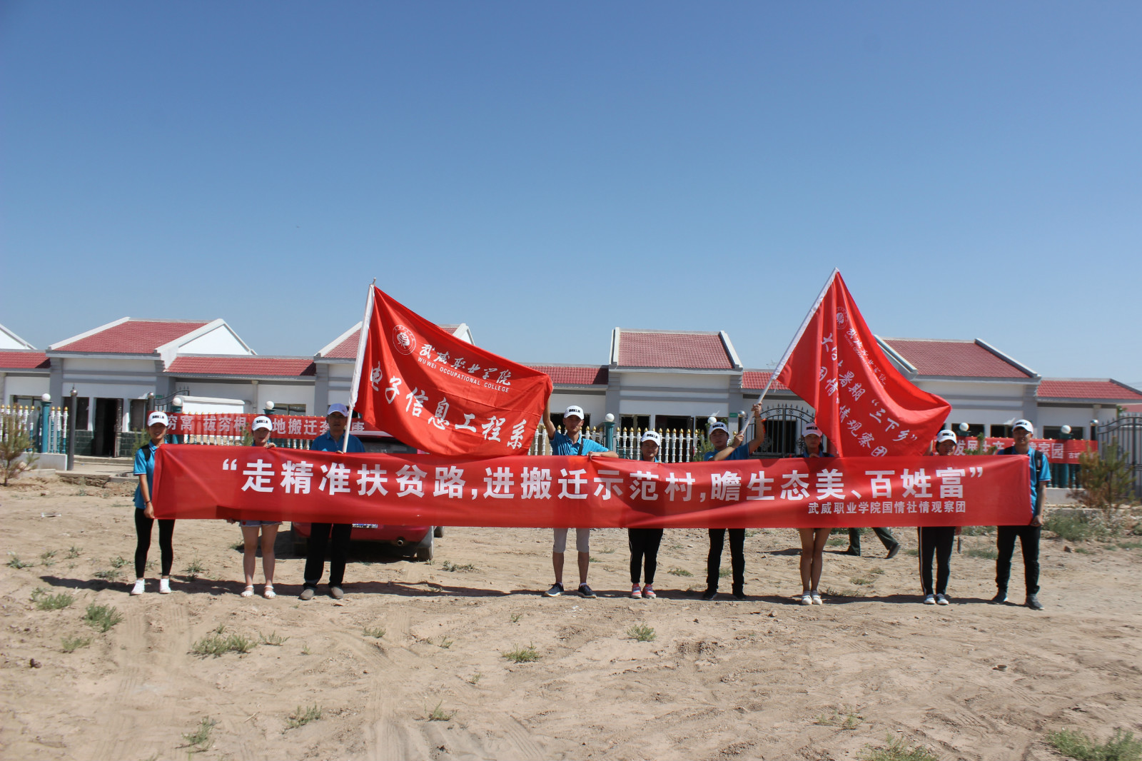 為深入了解武威市易地搬遷群眾的生產(chǎn)生活情況,武威職業(yè)學(xué)院國(guó)情社情觀(guān)察團(tuán)與7月15日-19日走進(jìn)涼州區(qū)九墩灘指揮部、金河鎮(zhèn)富泉村、古浪縣西靖鎮(zhèn)陽(yáng)光新村等易地搬遷示范村進(jìn)行了調(diào)研。