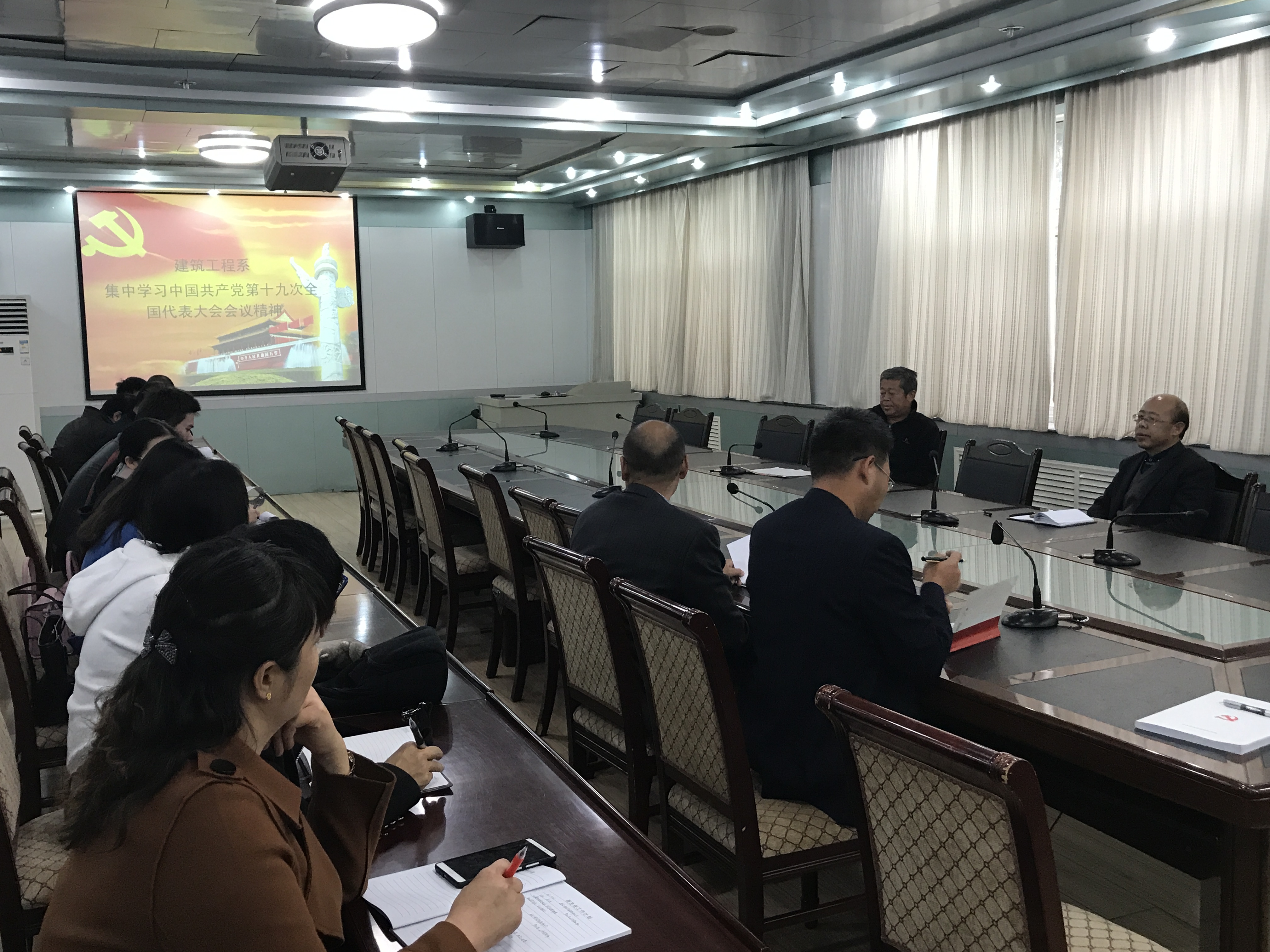 10月24日下午,建筑工程系全體教師在博學樓二樓會議室集中學習了中國共產(chǎn)黨第十九次全國代表大會報告及會議精神。會議由系黨總支書記聶百勝主持。