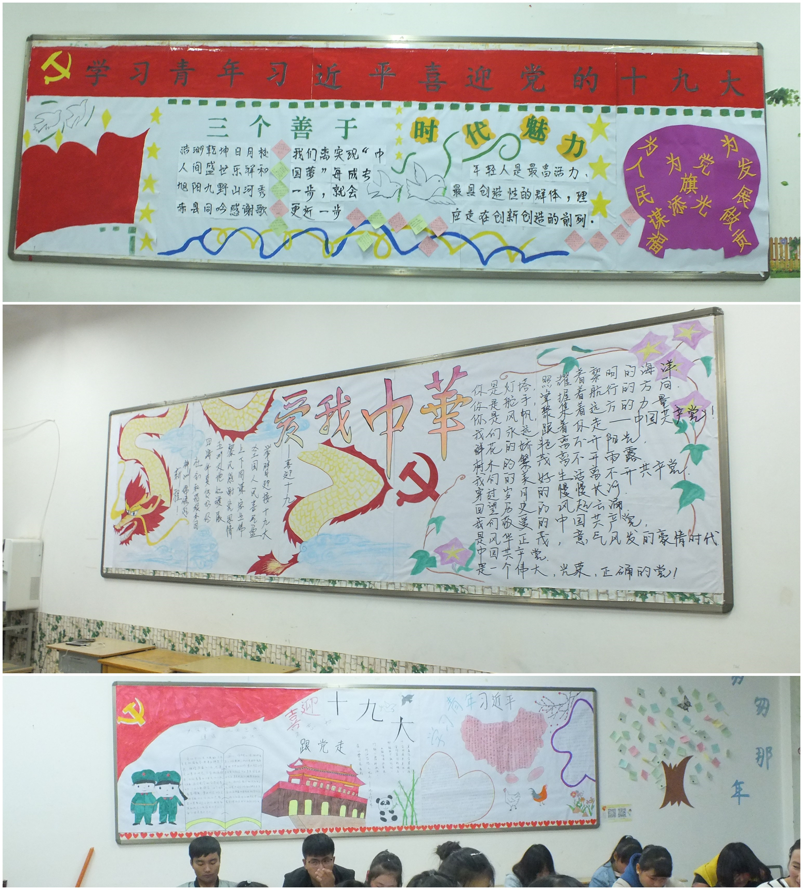 在黨的十九大即將召開之際,為進一步深化“中國夢”和“社會主義核心價值觀”主題教育,增進我系學生的愛國熱情和團結意識,營造良好的校園文化氛圍,引導學生準確把握中國夢的本質屬性,將個人夢想融入中國夢中,自覺增強奮斗拼搏精神,積極踐行社會主義核心價值觀,10月10日,經(jīng)我系黨總支研究決定,由系團總支負責,各班團支部開展“學習青年習近平,喜迎黨的十九大”為主題的黑板報評比活動。