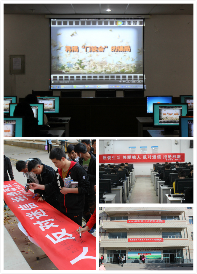 為了建設(shè)和諧校園,維護社會穩(wěn)定,凈化教育系統(tǒng)校園,電子信息工程于10月30日晚,在尚德樓11號機房開展了反邪教宣傳片放映活動。