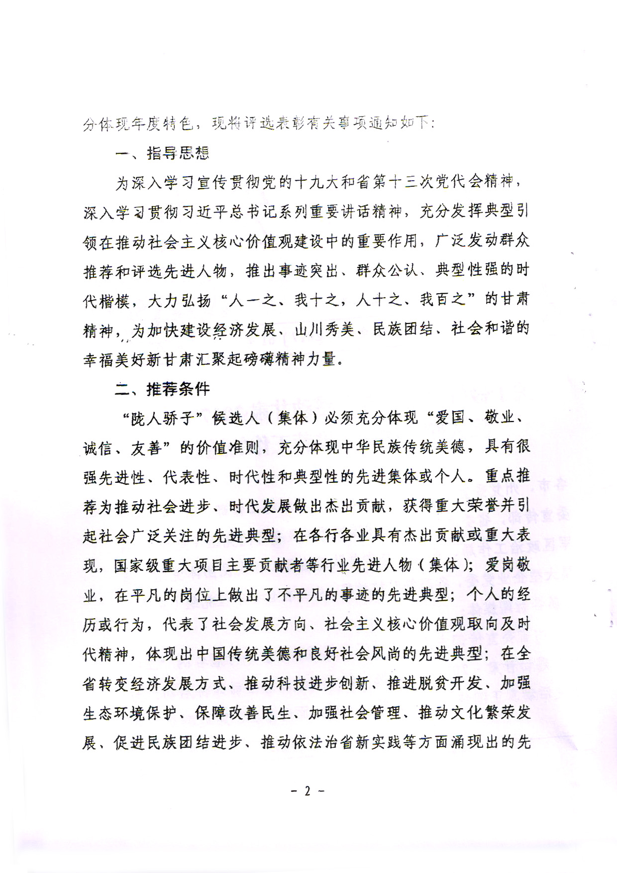 2.推薦對(duì)象必須按照《中共甘肅省委宣傳部〈關(guān)于做好‘工行杯’感動(dòng)甘肅·2017十大隴人驕子候選人推薦工作的通知》中的推薦條件確定。